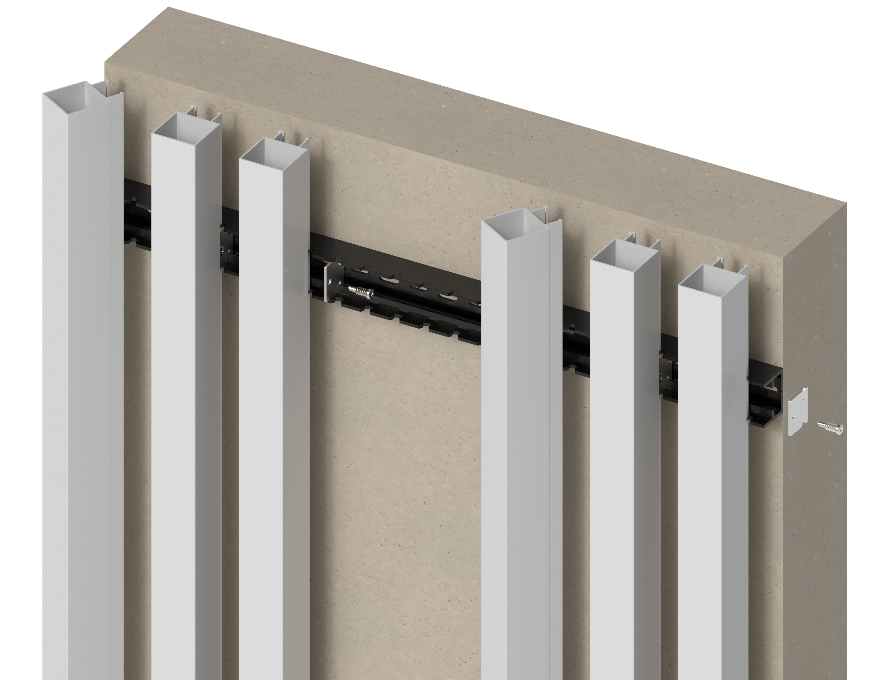 The system makes it possible to develop unique solutions where our aluminum slats can be combined with other types of cladding.