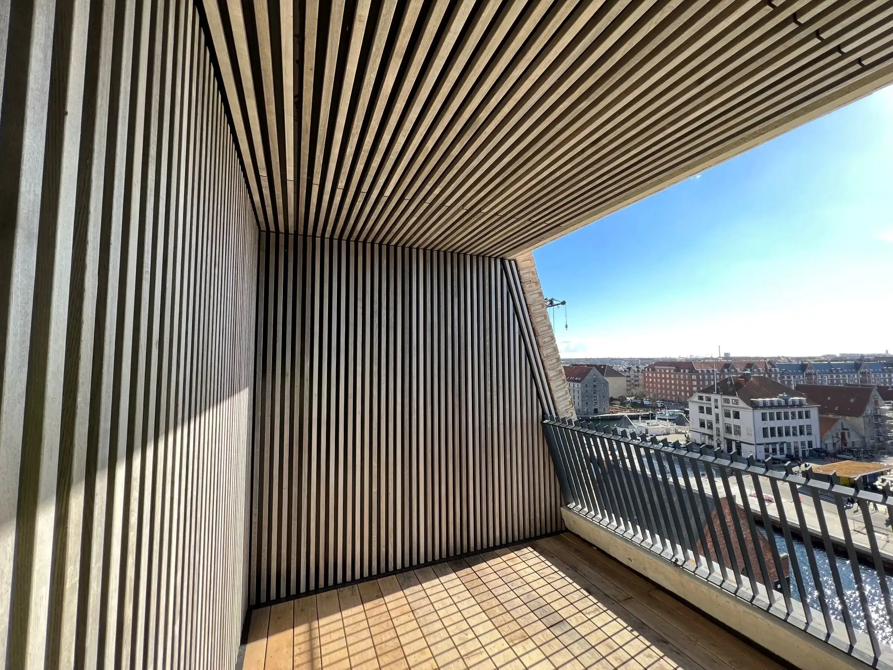 For Papirøen, thermo ash lamellae measuring 34x34mm, have been installed with a c.t.c distance of 70mm.
