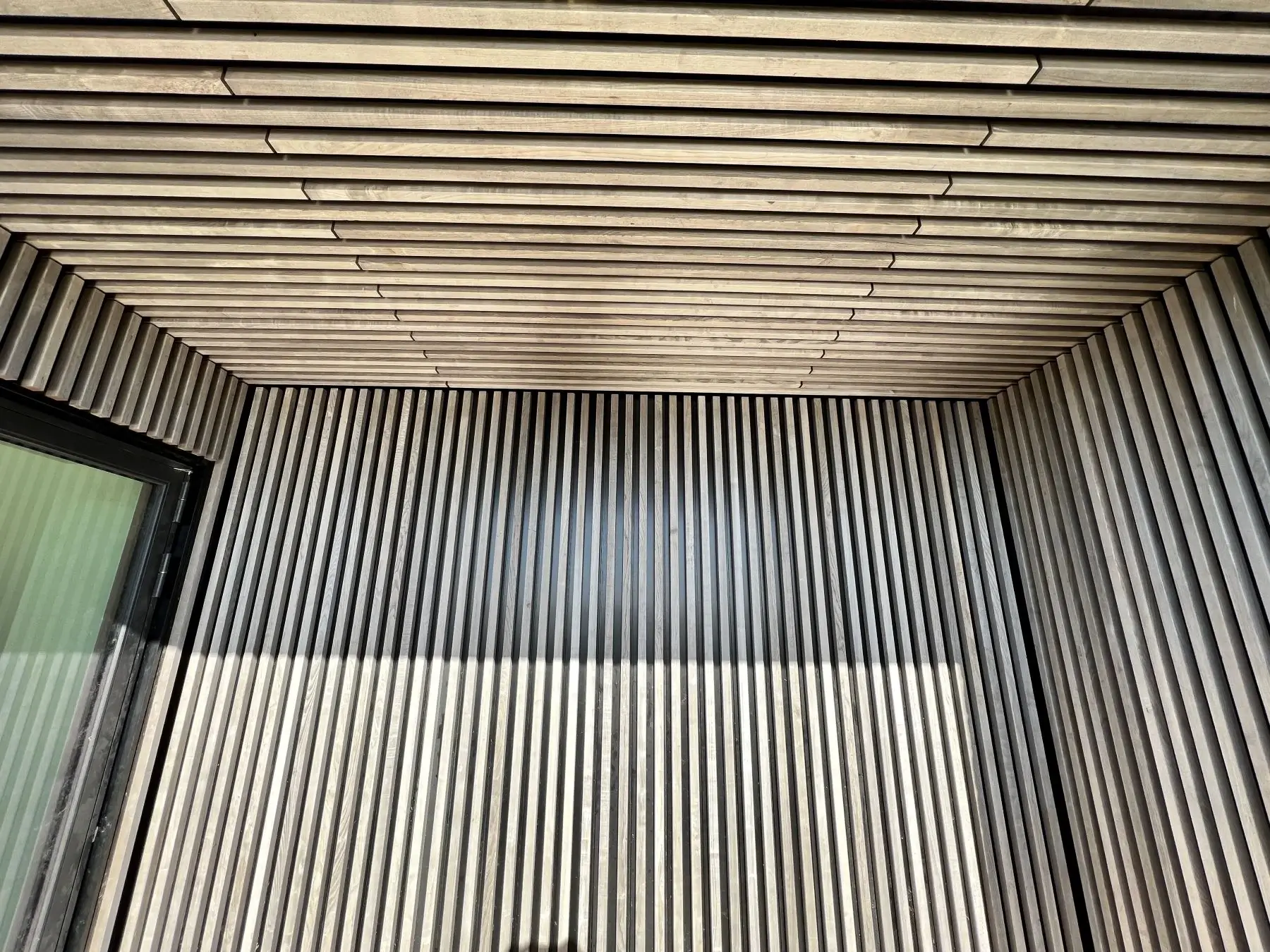 Nordisk Profil offers natural pre-patination of optional wooden lamellae and manages the patination process from production start, to installation.