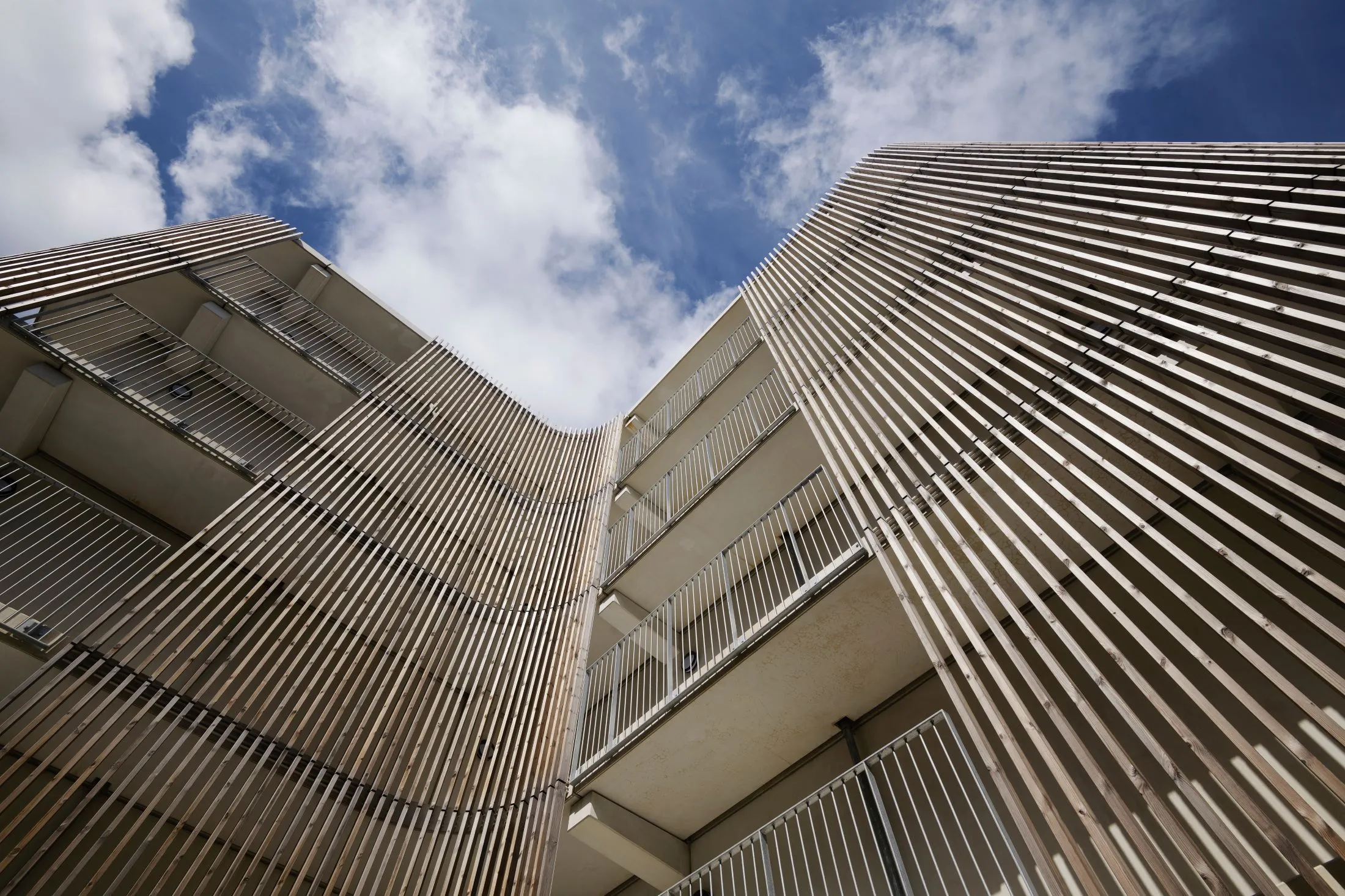 Woodfac Click er særlig velegnet til beklædning af parkeringshuse.