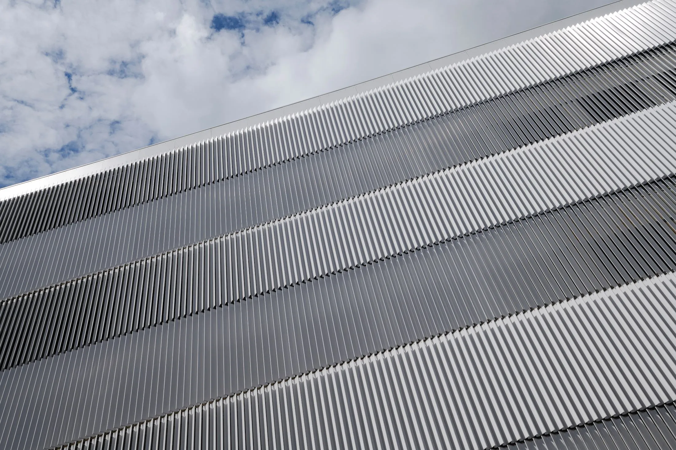 Alupanelerne beskytter bygningen mod vejrpåvirkninger og har en bagvedliggende ventilation, der sikrer, at facaden kan “ånde”.